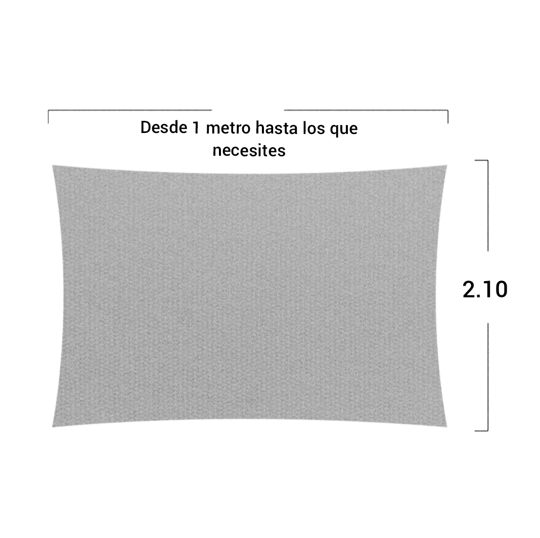 Una característica es el ancho de nuestra malla de 2.10 metros. Esto proporciona una cobertura generosa para tu espacio, sin uniones.